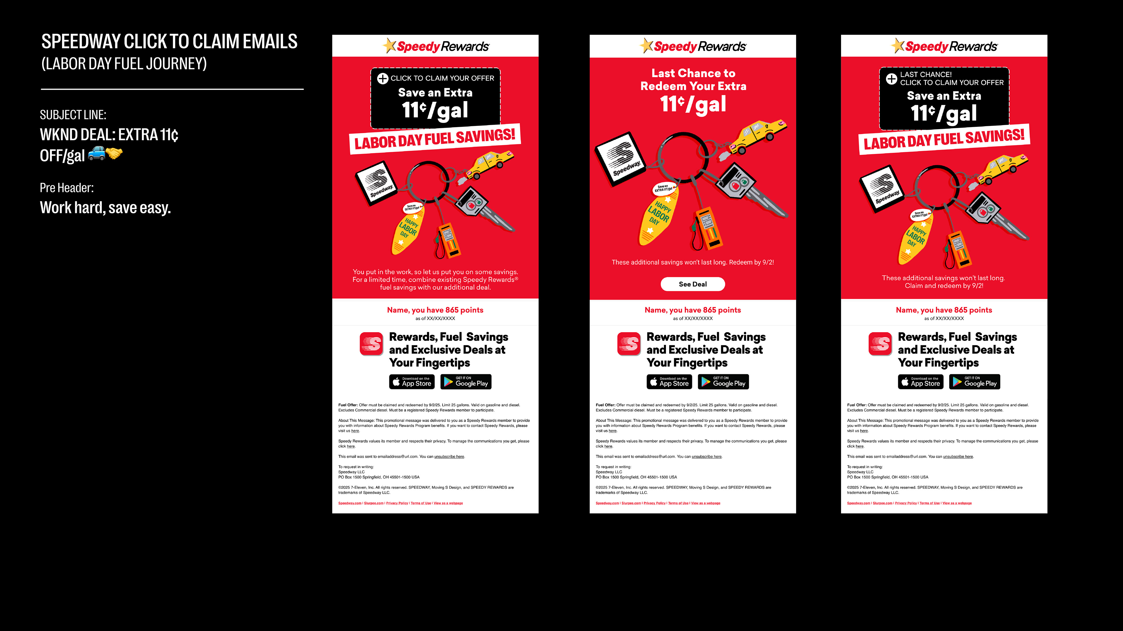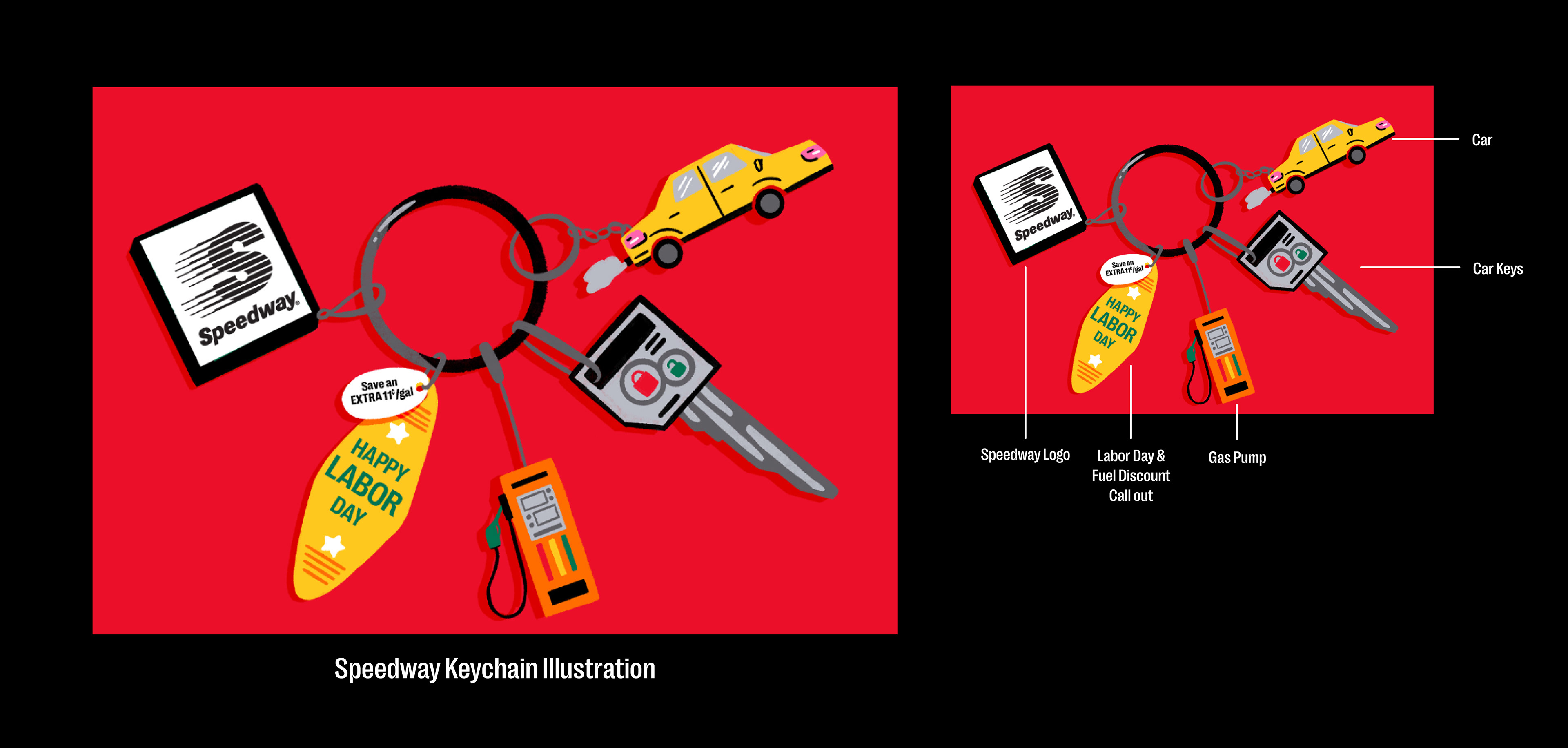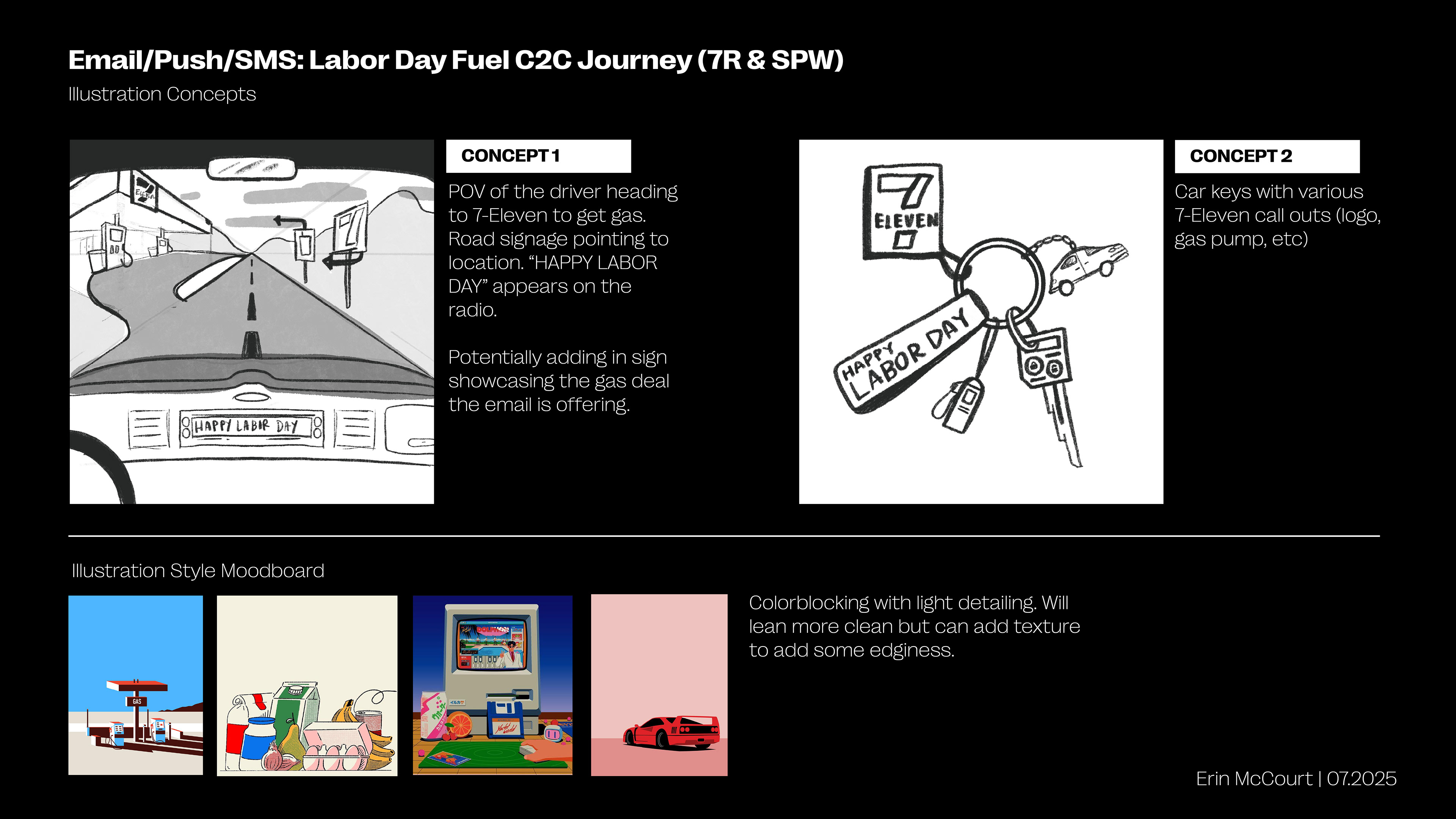 I pitched 2 concepts to the Creative Directors that I wanted to illustrate for the hero image of both the email as well as the pushes. Concept 2 was the chosen direction and from here I began to develop out the illustration for both 7-Eleven and Speedway.