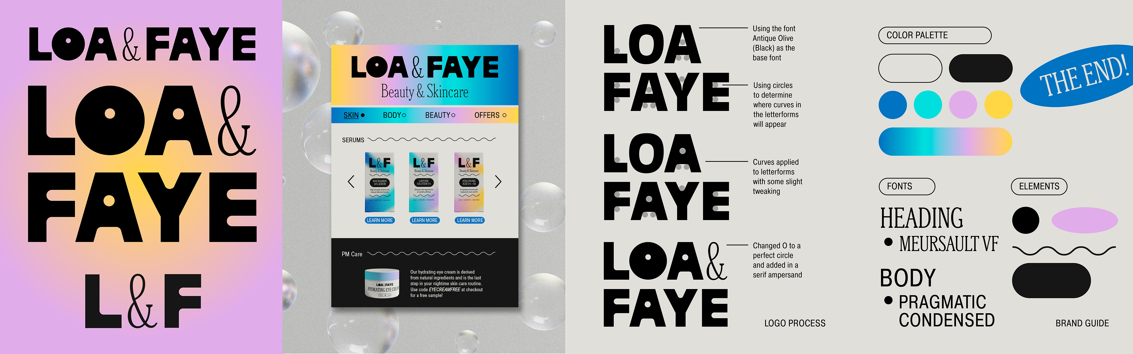 When I started this project, my goal was to keep the branding relatively simple and focus primarily on type and color, having any illustration or vector items be in addition. I made a custom type logo using a pre-existing font as the base and making a few small tweaks to allow the logo to be more playful and unique.
